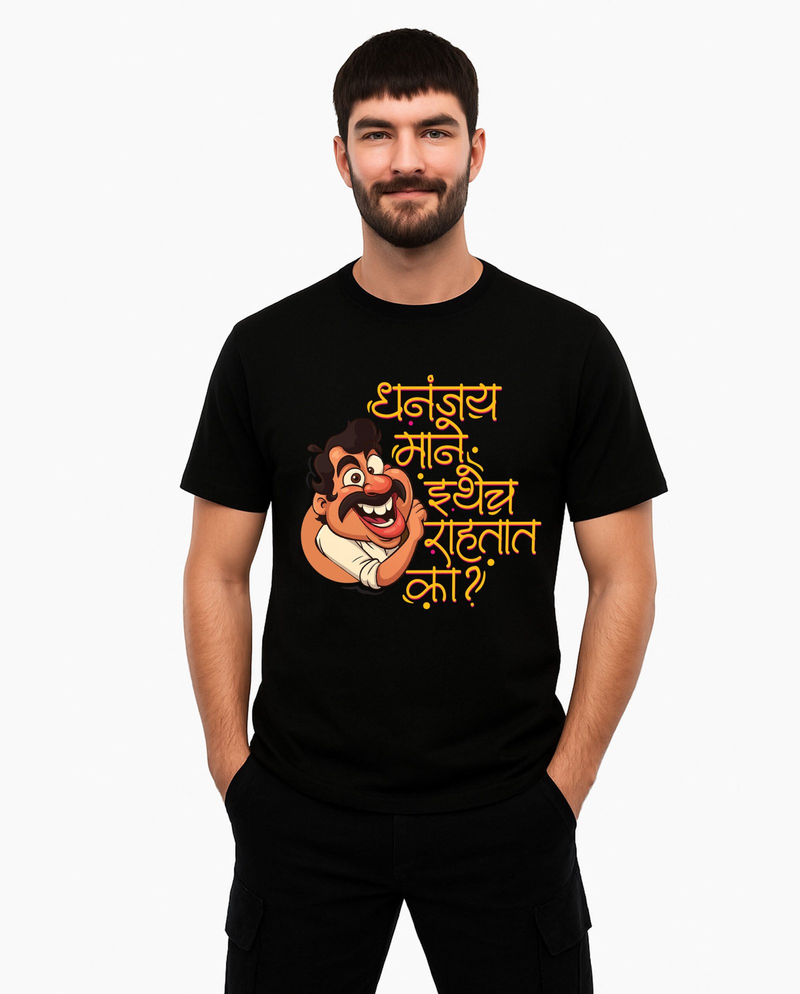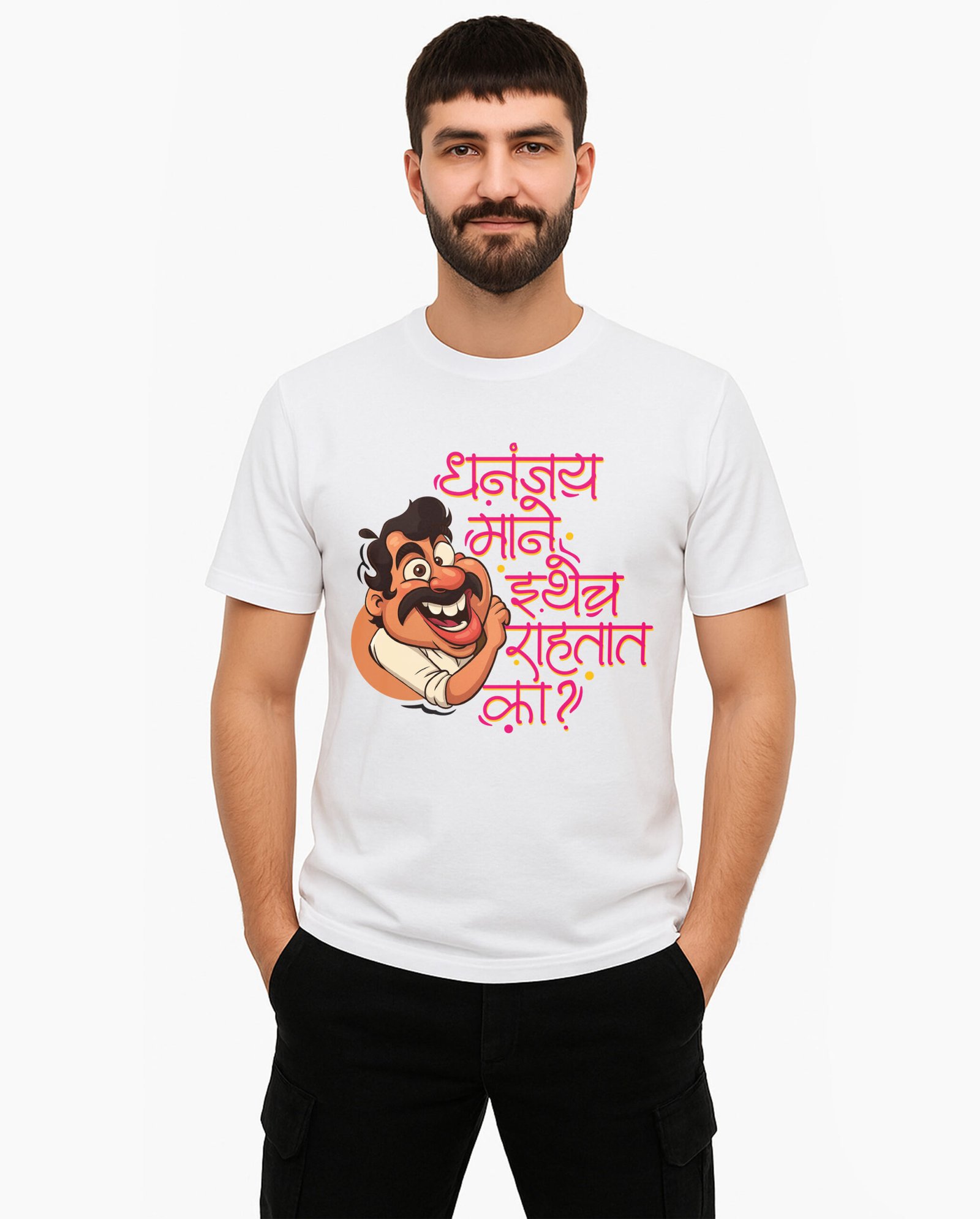 Our Dhananjay Mane Ithech Rahtat Ka T-Shirt captures that same intensity. Whether you’re a hardcore fan of the character, a lover of bold dialogues, or someone who simply enjoys powerful cinematic punchlines, this t-shirt becomes a perfect reflection of your vibe.
