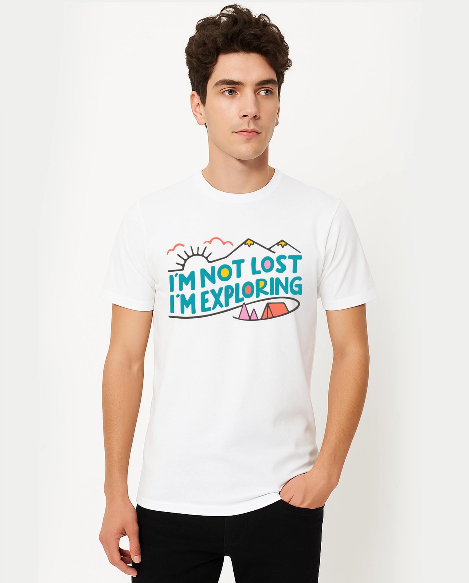 The ‘I Am Not Lost, I’m Exploring’ exploring T-shirt is the perfect travel tee for free-spirited wanderers who discover the world beyond maps.