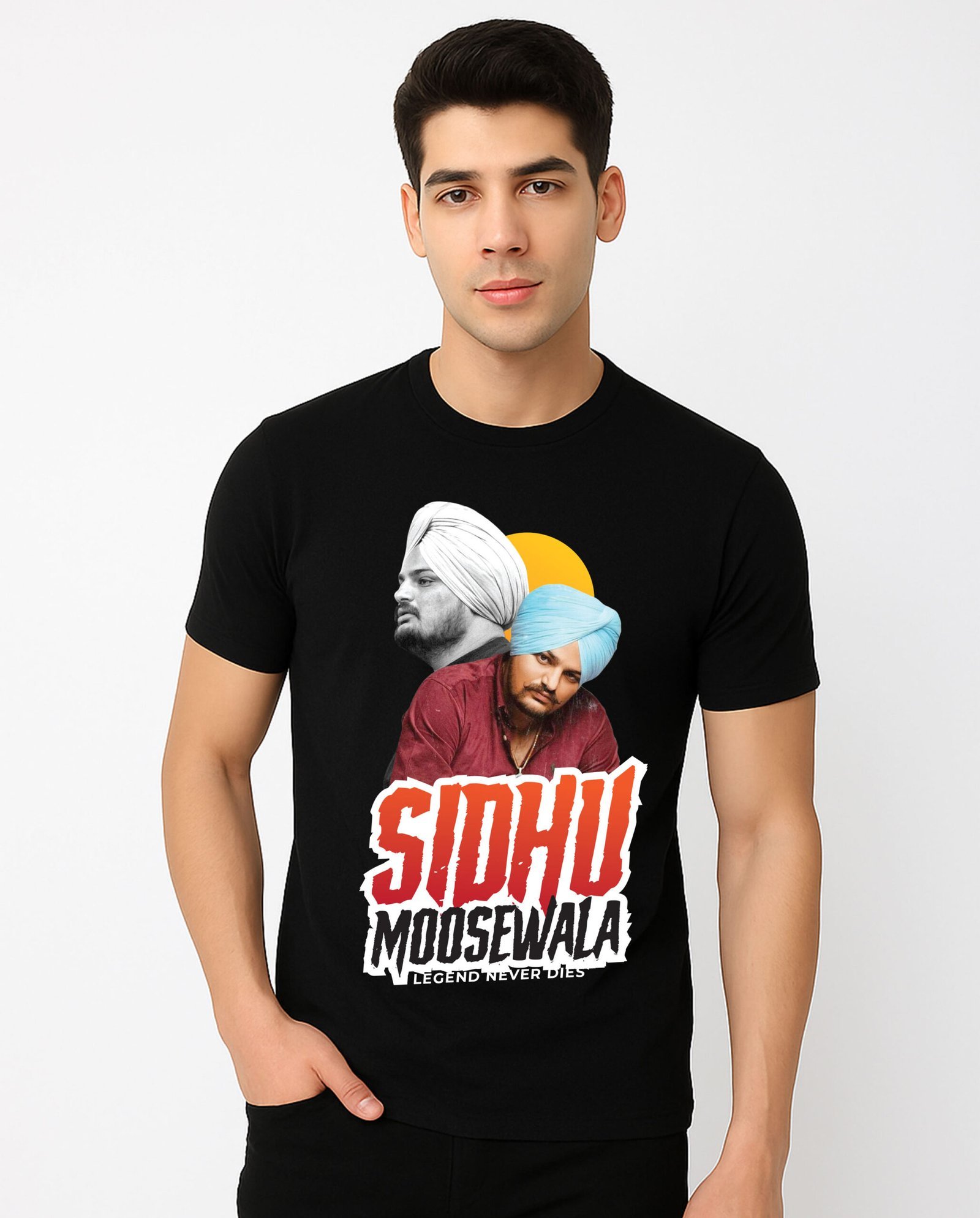 The Sidhu Moose Wala T-Shirt is available in multiple sizes and is designed to fit perfectly—whether you prefer classic comfort or a modern slim fit.